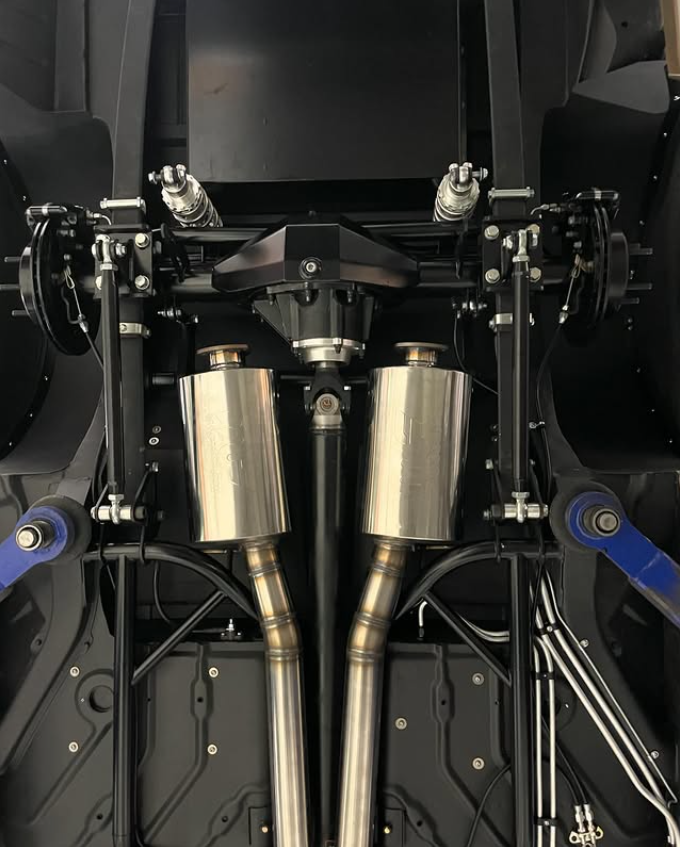 Custom metalwork designed and built in-house, including wheel tubs, chassis upgrades, exhaust systems, brackets, mounts, and bespoke components tailored to each project.